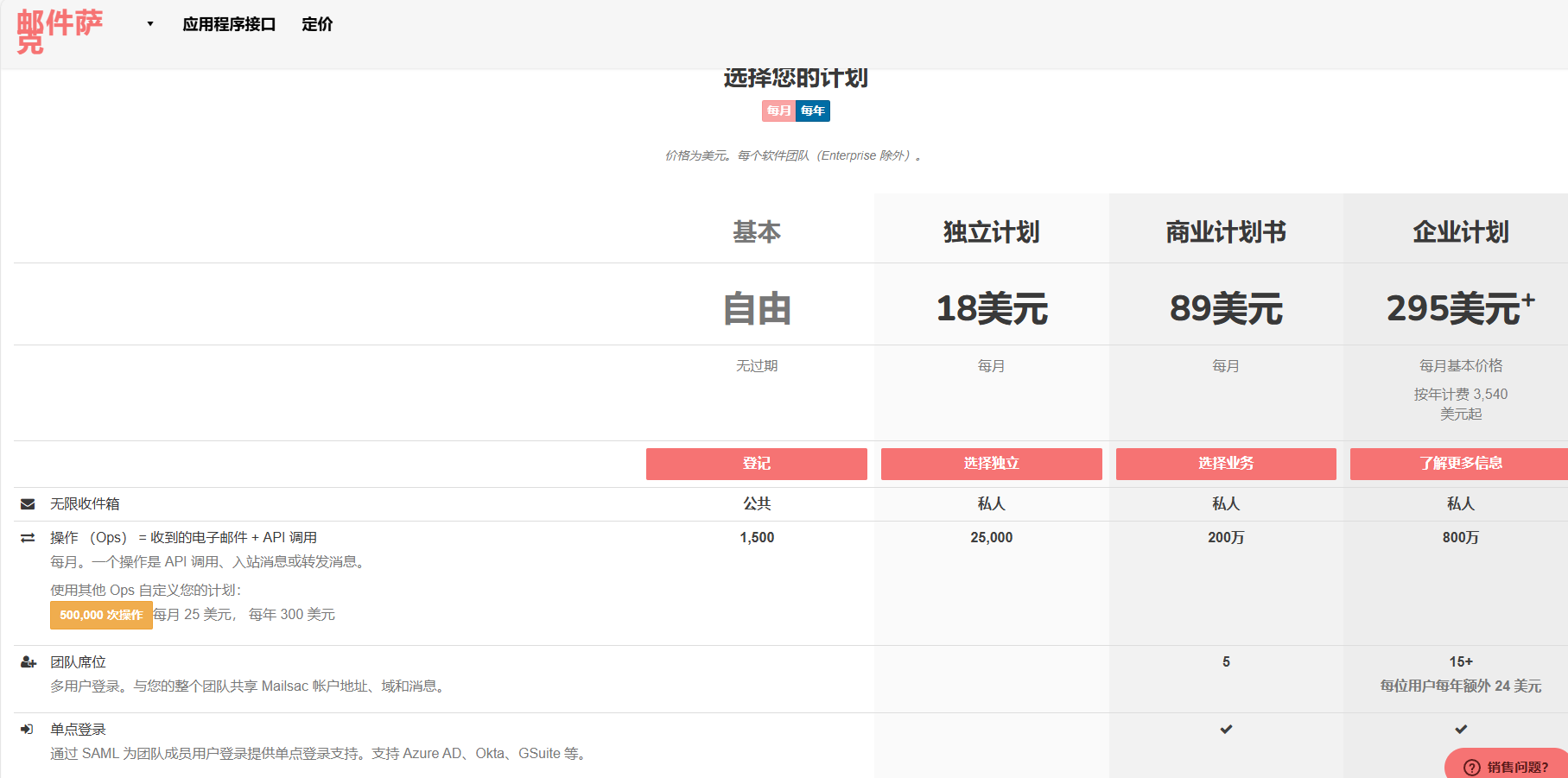 Mailsac根据不同用户的需求提供了多种定价方案。