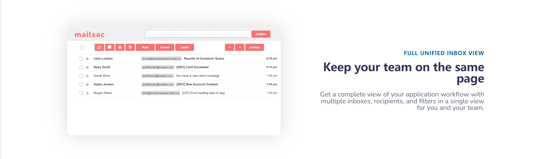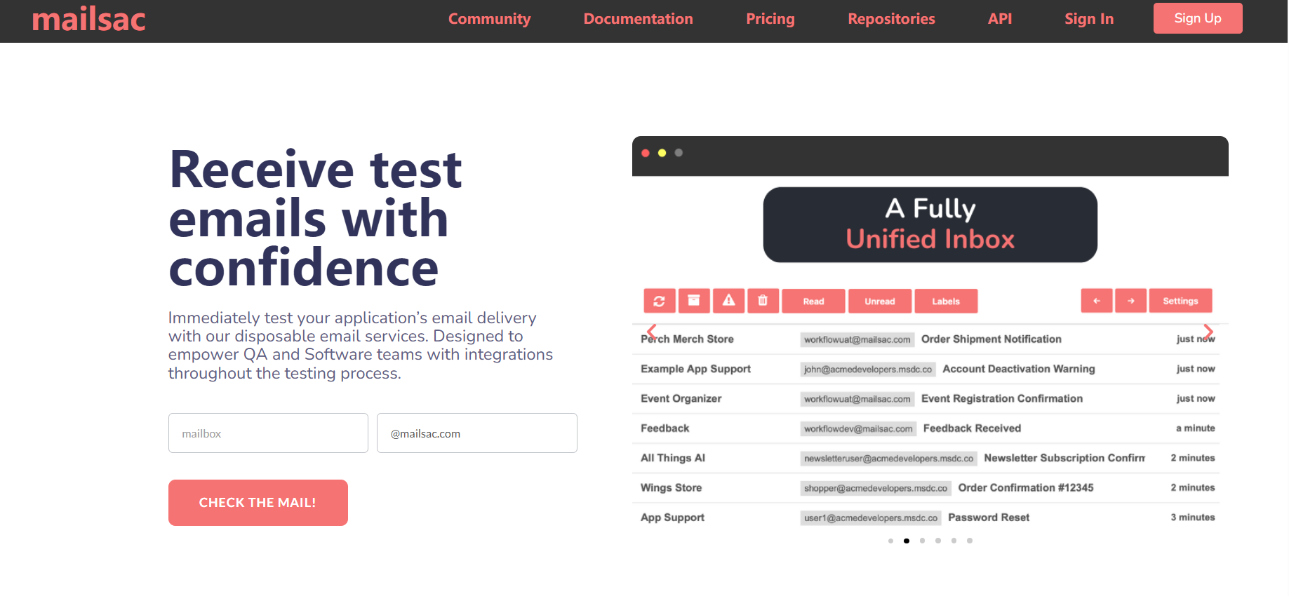 简化邮件管理:使用Mailsac,开发人员可以集中管理测试邮件,无需担心这些邮件与个人或工作邮件混淆。