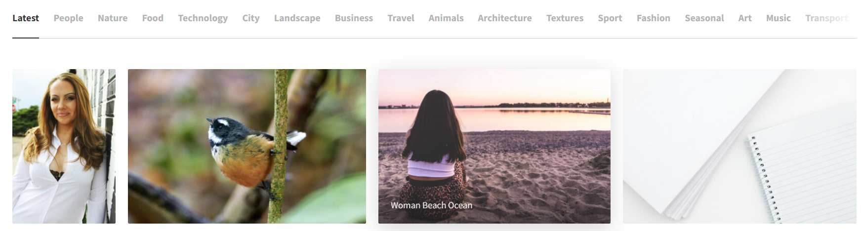 丰富的素材分类:网站拥有多种分类,如海滩、高清壁纸、抽象、自然、商务等,便于用户根据需求选择。