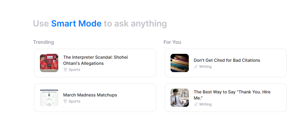 发现新事物:有时,用户可能会陷入自己的信息茧房而不自知。YOU.com会帮助打破这种局限,引导探索新的领域和兴趣点。