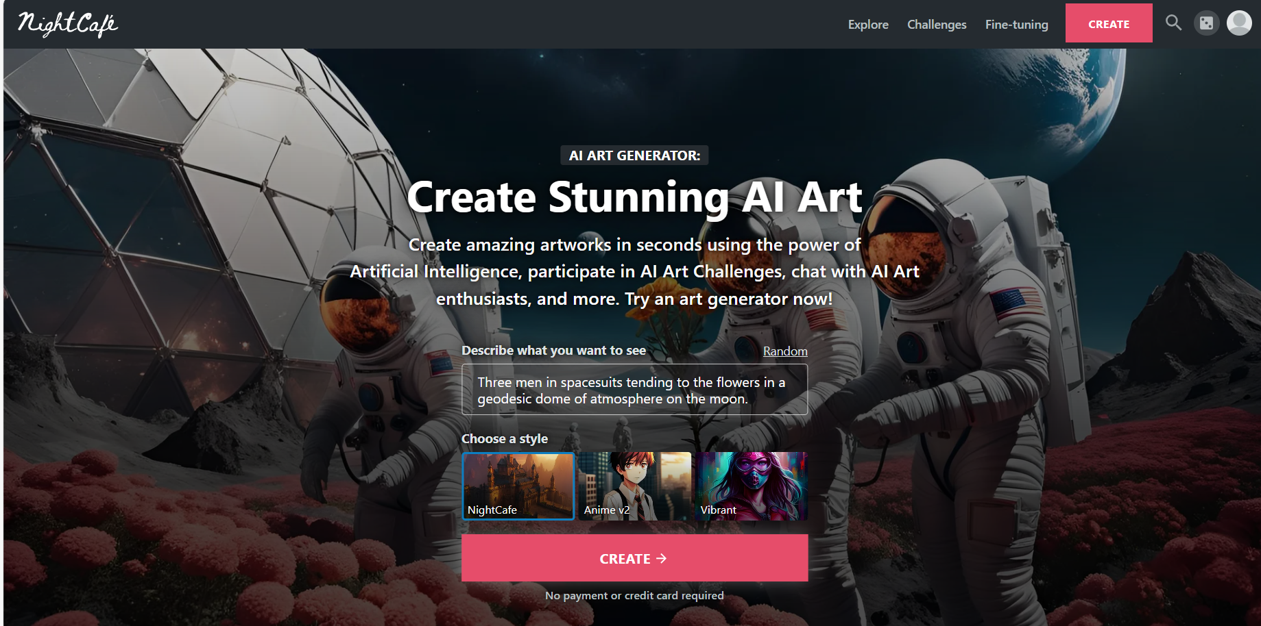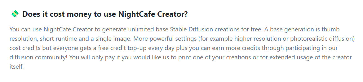 NightCafe的基础生成功能是免费使用的,包括使用AI技术将文本描述转换为图像,或者给图片添加特定的艺术风格。