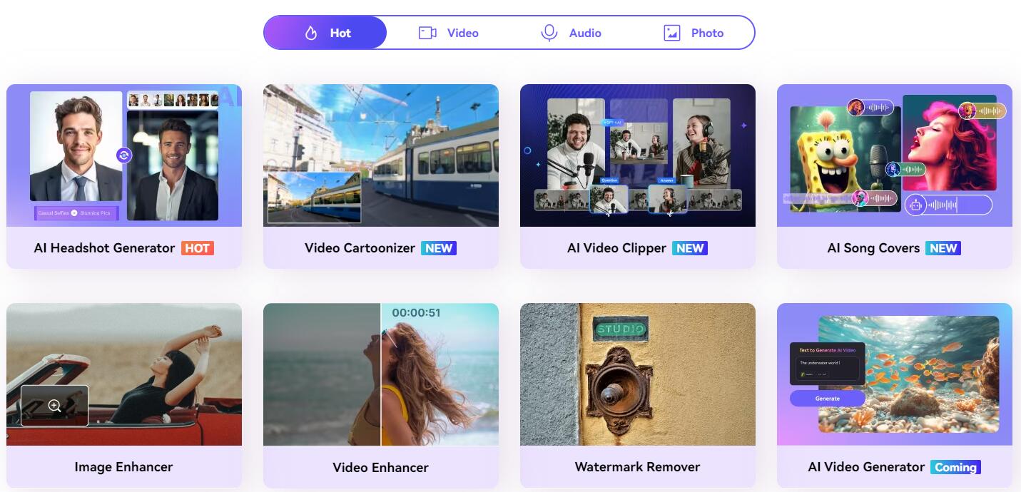 一站式AI驱动的在线媒体处理工具,可免费试用