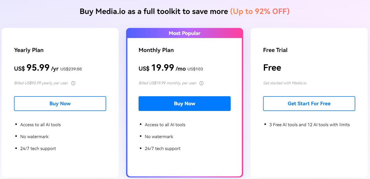 关于Media.io的定价