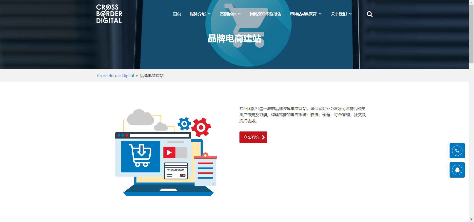 品牌电商建站:专业团队打造一流的品牌跨境电商网站,确保网站SEO友好同时符合欧美用户审美及习惯。构建完善的电商系统:物流,仓储,订单管理,社交及折扣功能。跨境电商品牌化是未来的一个趋势。一个专业的、靠谱的、国际化的数字营销公司,可以帮助中企出海打造品牌,占领更多的国际市场。 Cross Border Digital (深圳环创网络) 团队在海外数字营销的专业值得您的信赖,特别是SEO解决方案和PPT这块做得非常深入,助力了越来越多知名企业更稳、更全面地走向国际市场。