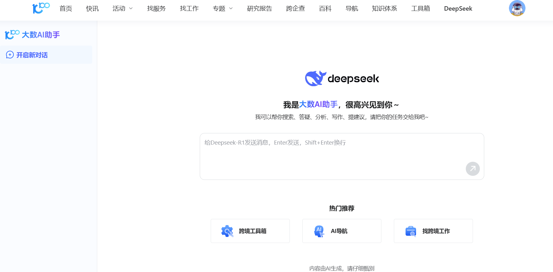 大数-DeepSeek已发布10100.com/ds,即刻体验大数(DS)XDeepSeek(DS)-满血版跨境电商专属DS^2