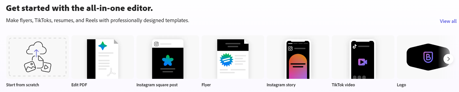 总之,Adobe Express 旨在为所有水平层次的用户提供一个简单、快捷且功能强大的创意表达平台,无论是专业人士还是初学者,都可以从中受益。