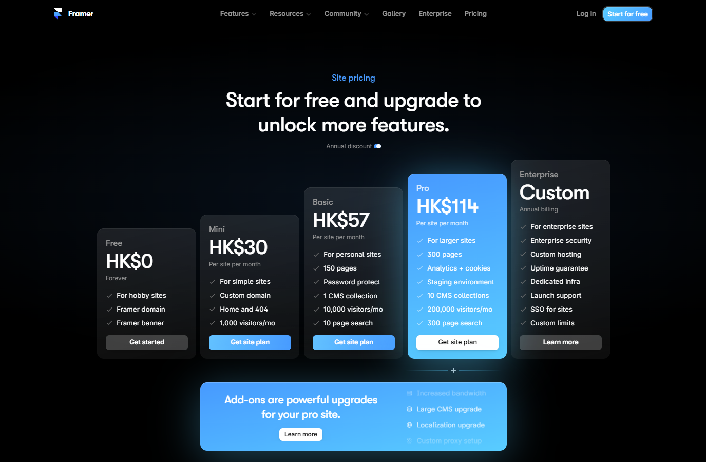 关于Framer的定价