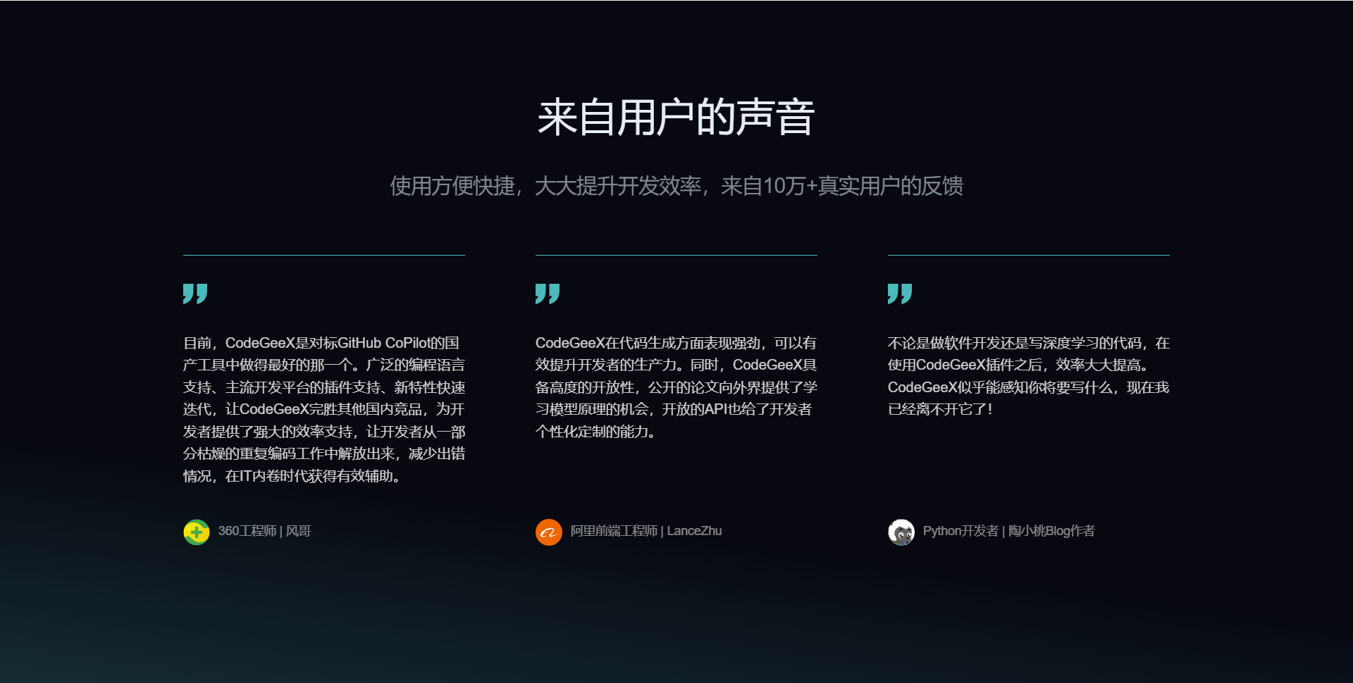 CodeGeex 是一个非常强大的工具,可以帮助开发人员提高工作效率。它适合所有级别的开发人员,包括初学者和专业人士。