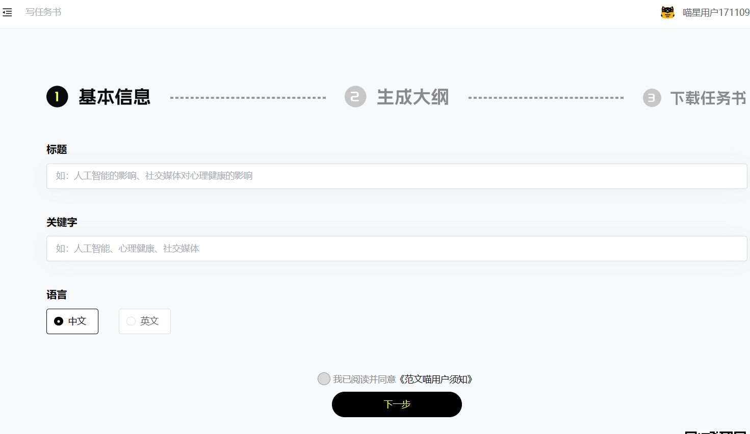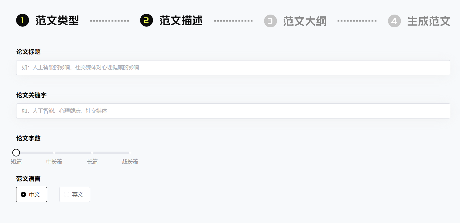 论文范文生成:提供学术论文/期末论文/毕业论文的大纲、范文和初稿生成。