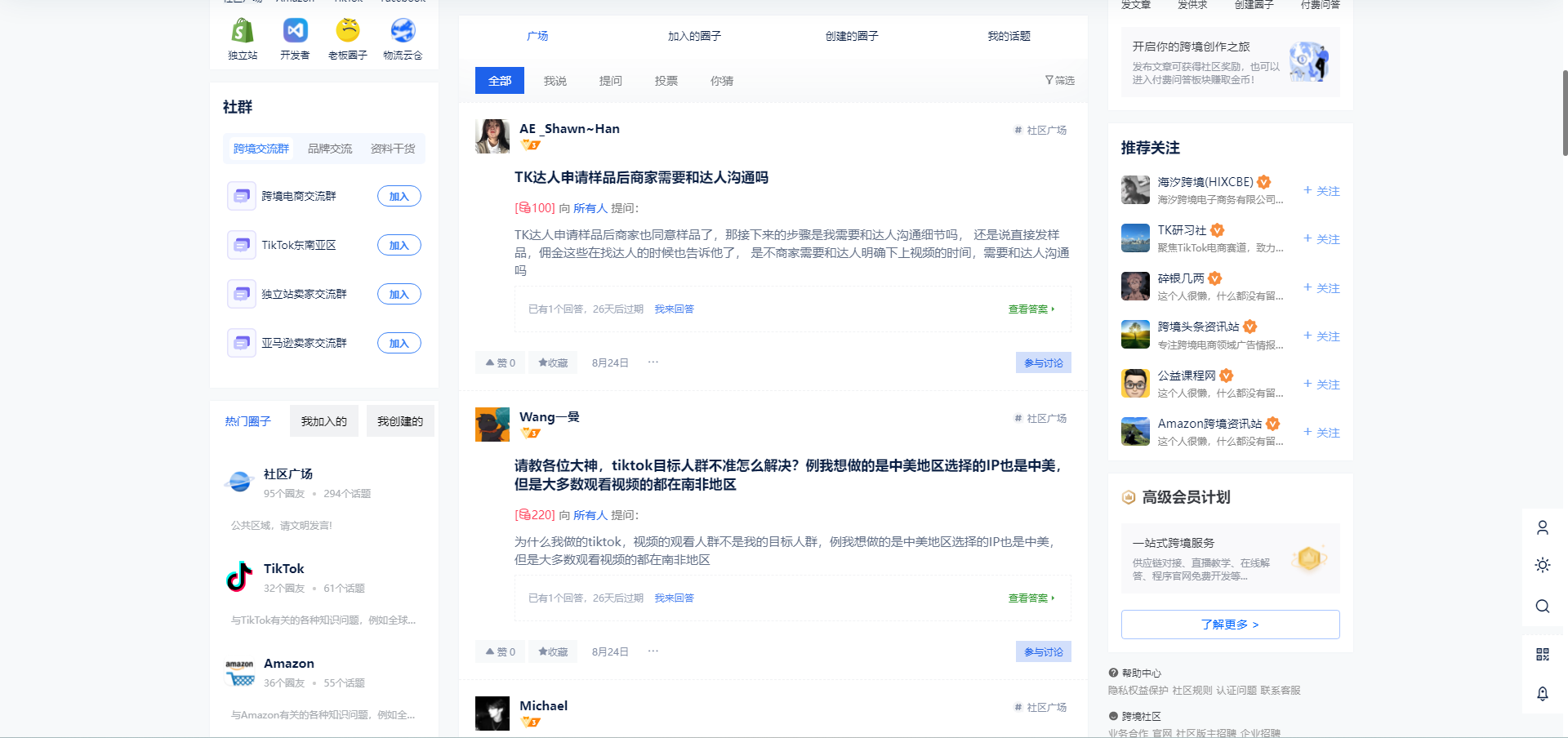 行业聚焦与专业性:作为跨境外贸电商行业的专属交流平台,跨境社区汇聚了大量行业内的专业人士和卖家,能够提供高度专业化和针对性的信息、经验和建议。这种聚焦性使得社区内的讨论更加深入且贴近实际,有助于解决用户在实际操作中遇到的问题。