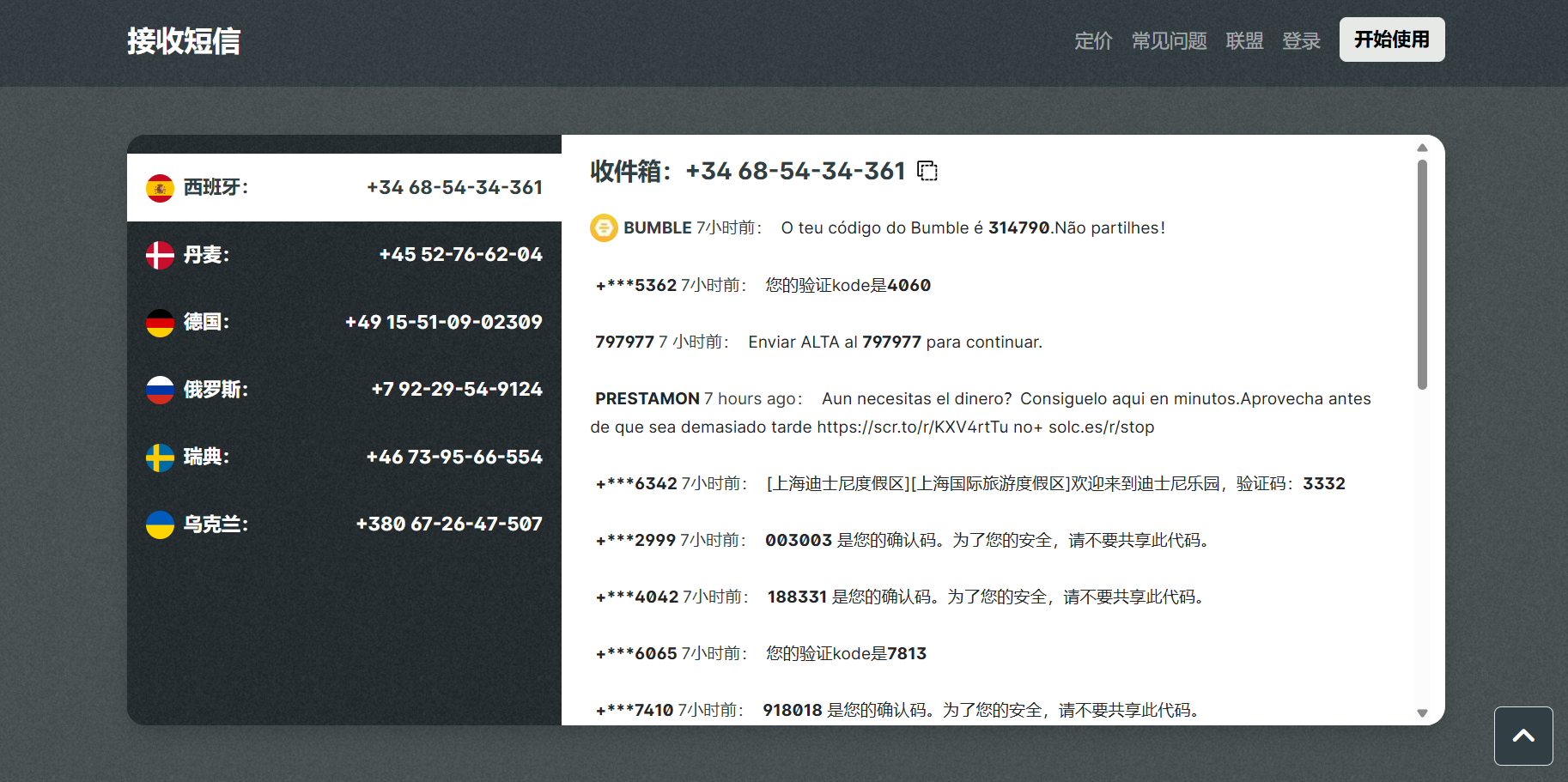 Receive-SMS是一个提供在线接收短信服务的平台,允许用户在网络上接收一次性短信,例如那些通常用于验证注册过程中的验证码。该服务旨在提供一种既安全又隐私的方式,让用户可以在不透露自己真实电话号码的情况下接收短信。它通常被用于注册在线账户、验证金融服务、社交媒体、电商平台等场合,也方便用户进行私人注册或测试服务。