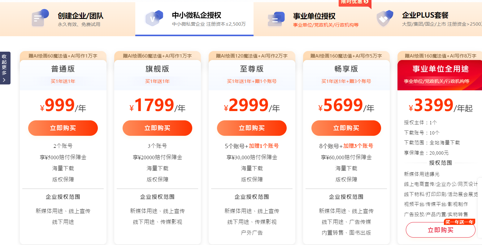 企业服务:为企业提供定制化服务,包括素材定制、批量授权等,满足企业级用户的特殊需求。