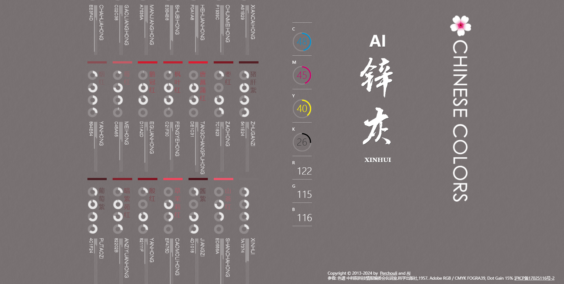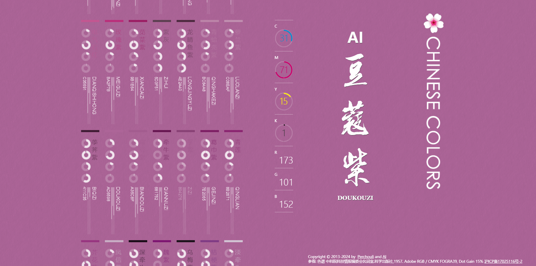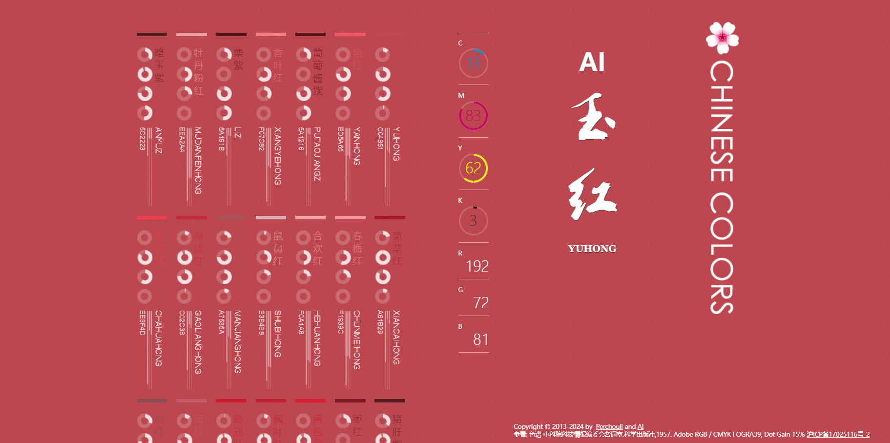 中国色网站是一个专门介绍和展示中国传统色彩的数字平台。它不仅提供色彩的视觉展示,还详细地介绍每种色彩的起源、历史背景和文化意义。网站致力于教育公众了解中国丰富的色彩文化传统,并促进这些色彩在现代设计中的应用。