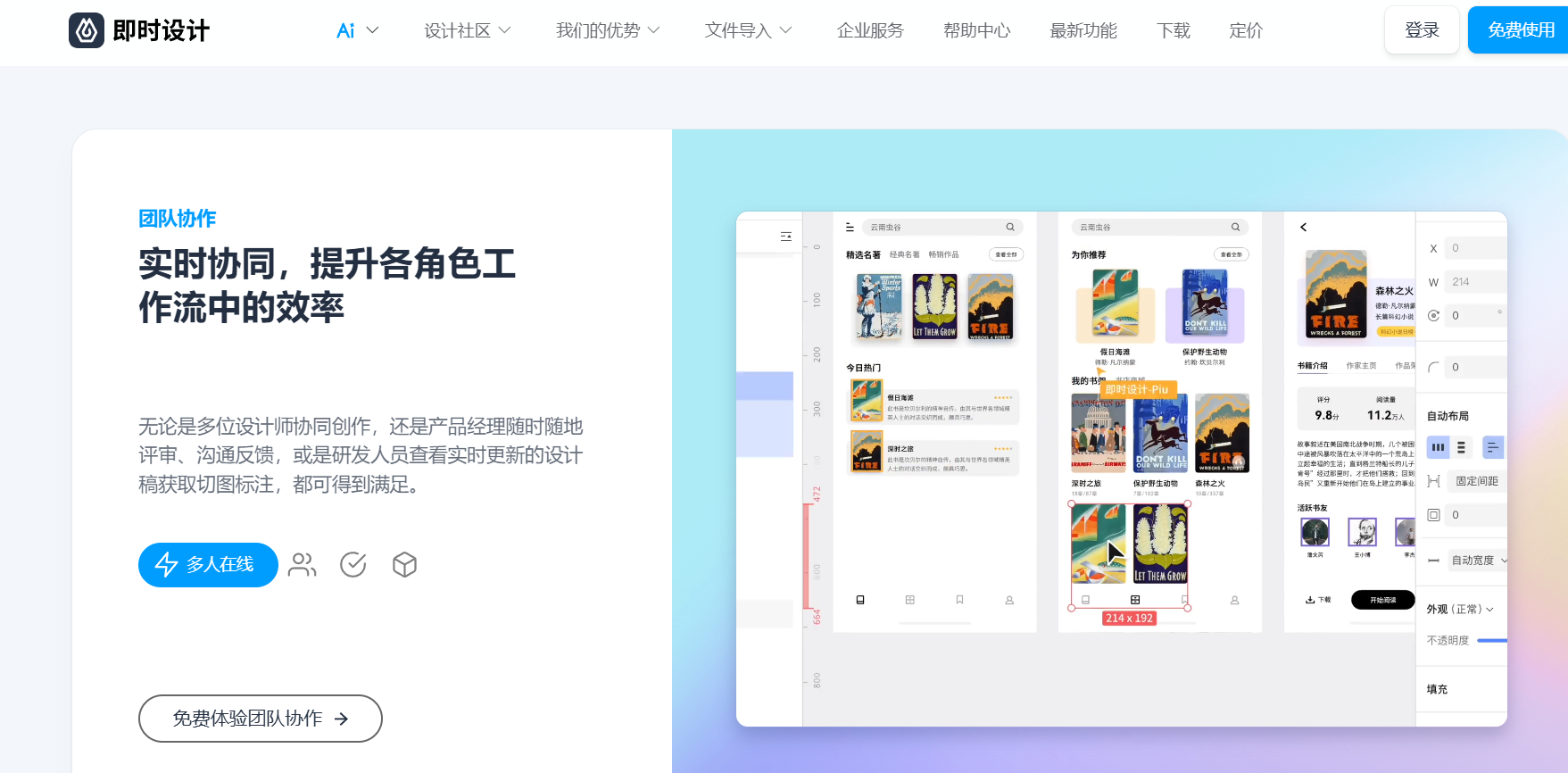免费使用:即时设计的所有工具、资源和插件均可免费使用,降低了设计师的经济负担。