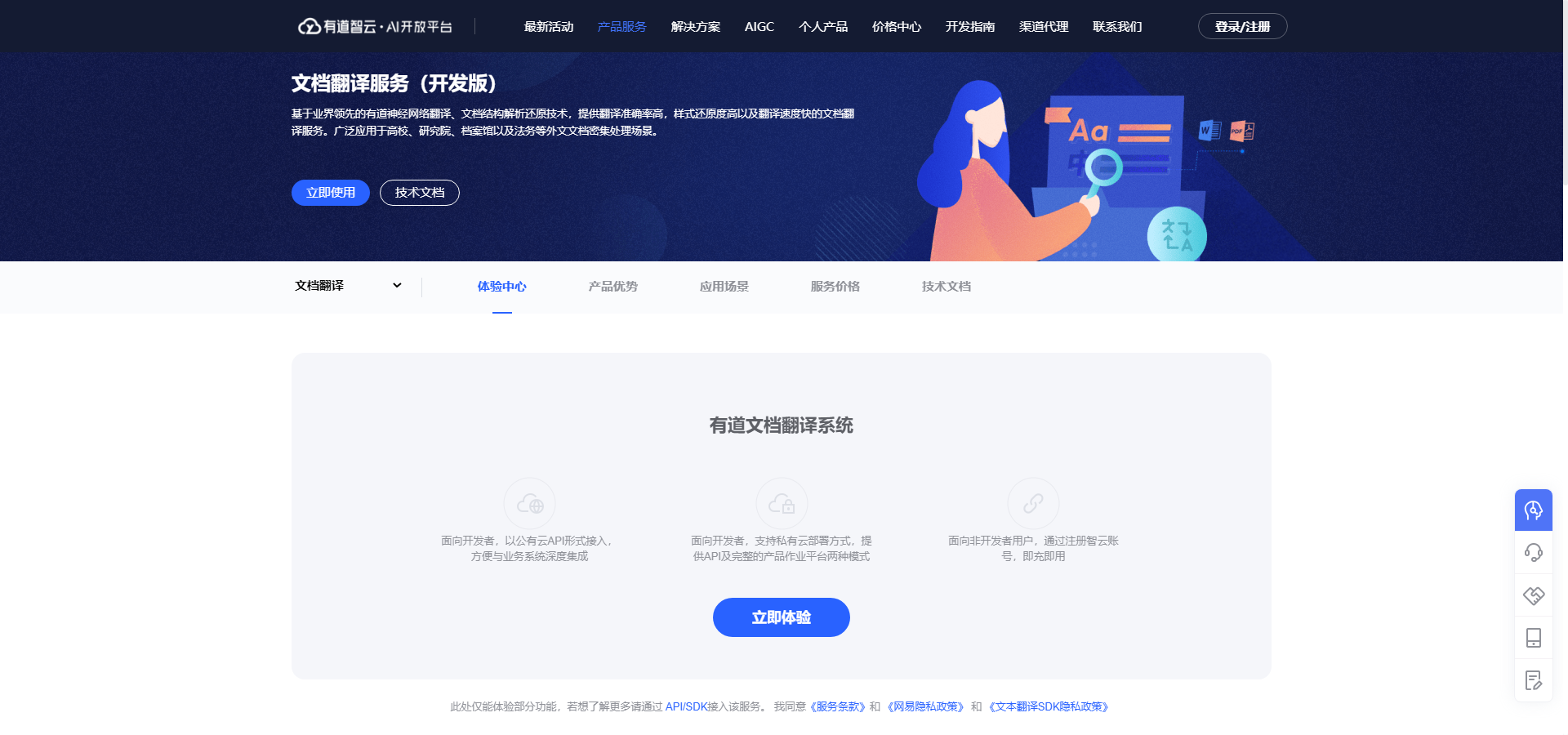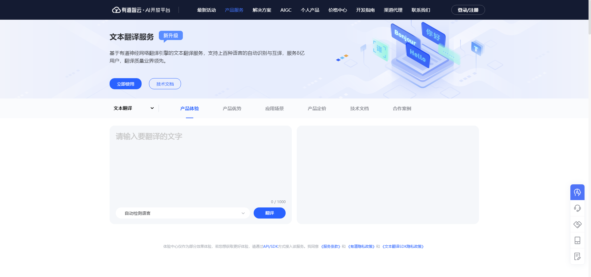 • 提供在线视频翻译系统,利用AI技术在线翻译多语种字幕,满足视频制作、跨语言交流等需求。