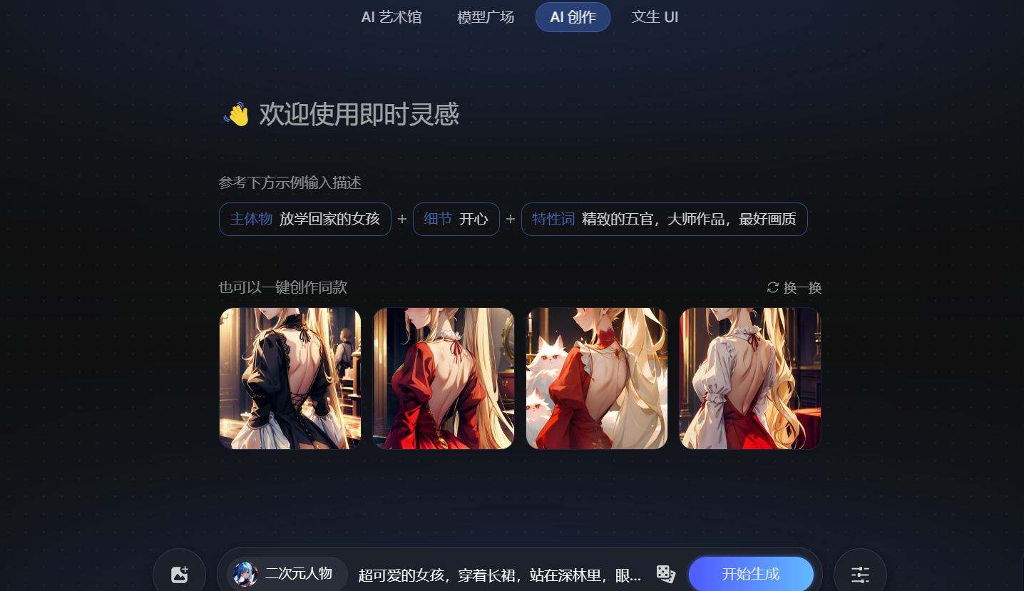 即时灵感是一款功能强大、简单易用的AI绘画工具,适合个人设计师、创意人员以及有绘画需求的用户使用。