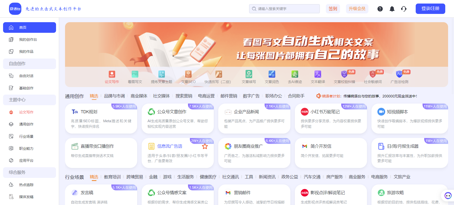 晓语台是北京字里心间科技有限公司团队推出的一款AI营销文本创作产品,它基于大语言模型、混合大模型和AIGC技术研发,综合了自然语言处理、深度学习、内容创作、专业性数据和生成逻辑等,旨在助力内容创作者们轻松拥有自己的AI创作助手,以更低成本、更高效率地进行创作。