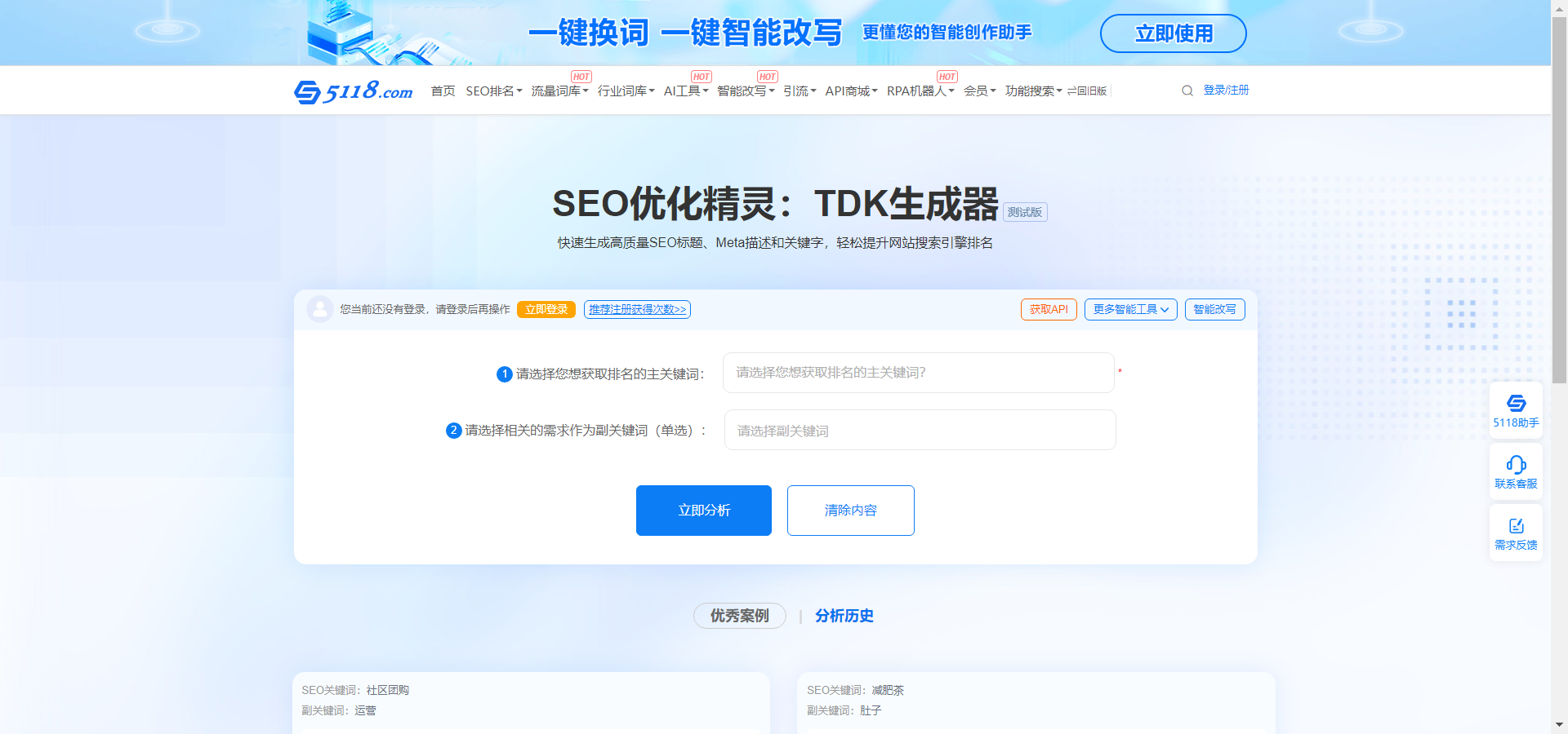 站长与网络管理员:负责网站日常运营和管理的站长与网站管理员,需要关注网站的SEO表现,确保网站在搜索引擎中获得良好的排名。5118SEO优化精灵能够帮助他们快速分析关键词、生成高质量内容,并优化网站的TDK等元素,提升网站的整体SEO效果。