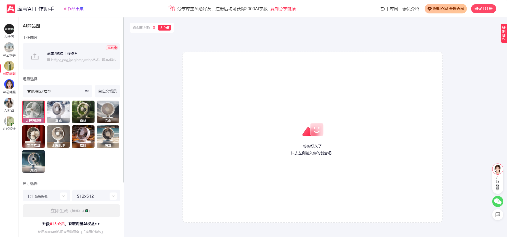 AI商品图设计:针对电商和广告行业的特定需求,无限画特别推出了AI商品图设计功能。该功能能够根据用户输入的商品信息、描述或现有图片,自动生成符合电商平台规范、吸引眼球的商品展示图。无论是产品主图、详情页图还是广告创意图,无限画都能帮助用户快速完成设计,提升商品吸引力和转化率。