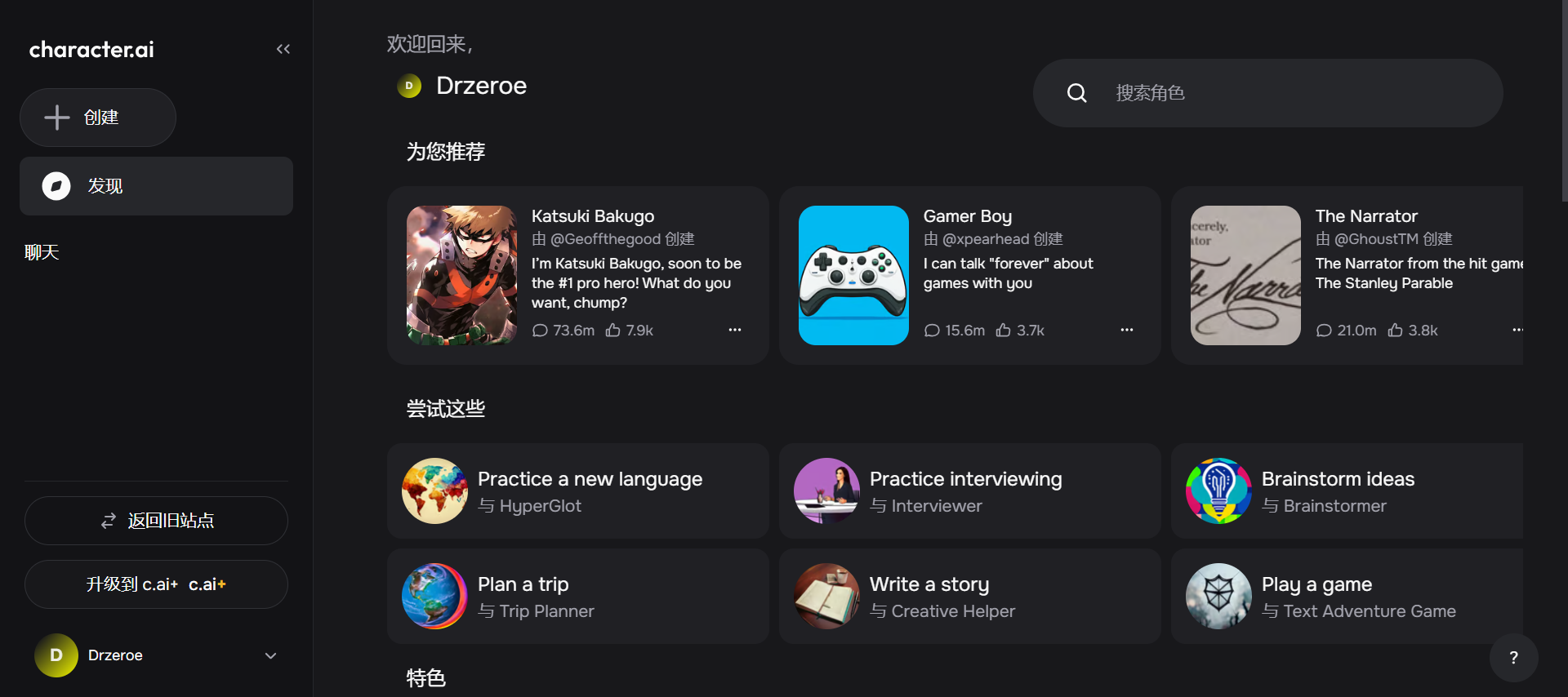 娱乐和游戏爱好者:Character.ai 提供了丰富的预设角色和创意文本生成功能,可以为娱乐和游戏爱好者带来全新的体验,例如与喜爱的虚拟角色互动、参与角色扮演游戏等。