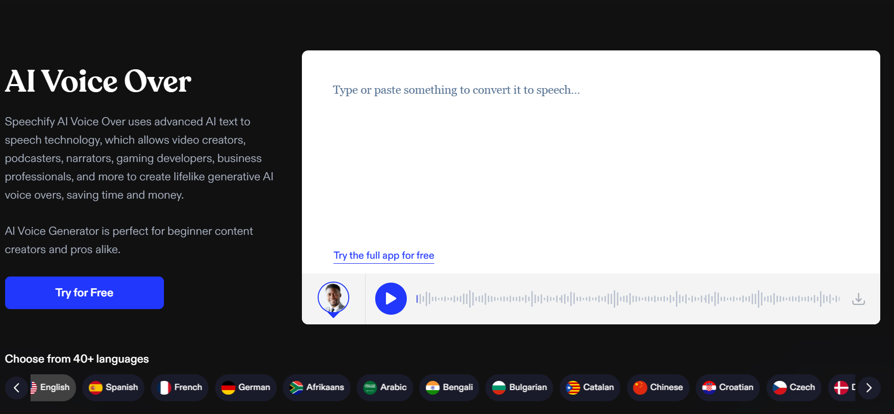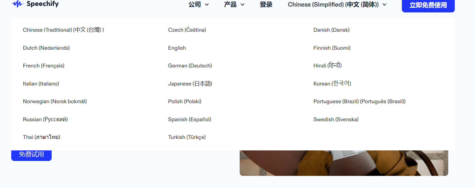 多语言支持:Speechify支持超过100种语言的文字转语音功能(支持中文),轻松应对不同语言的需求。