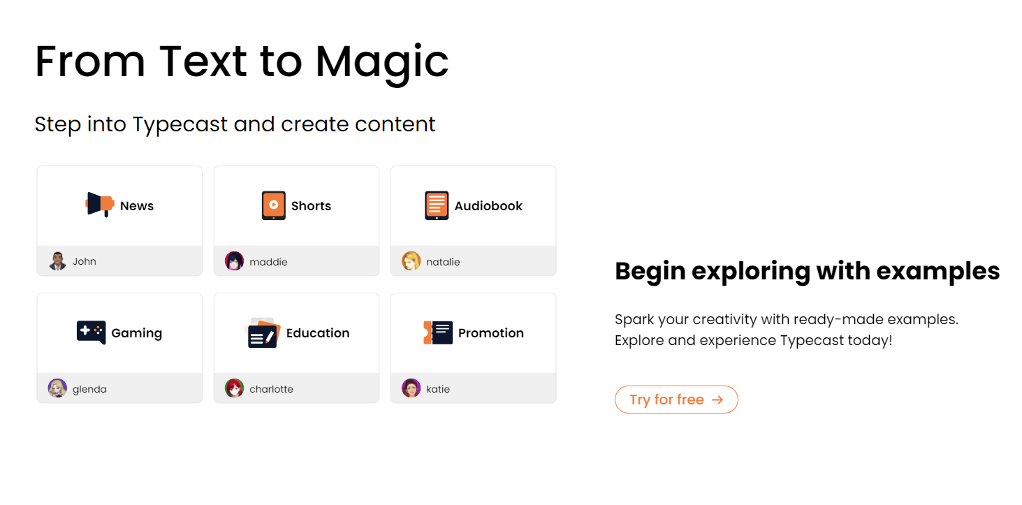 要使用Typecast,只需将文本输入或粘贴到平台上。然后,从可用选项中选择声音风格,给您的内容带来所需的情感色彩。一旦您定制了设置,就可以下载生成的音频并在项目中使用。