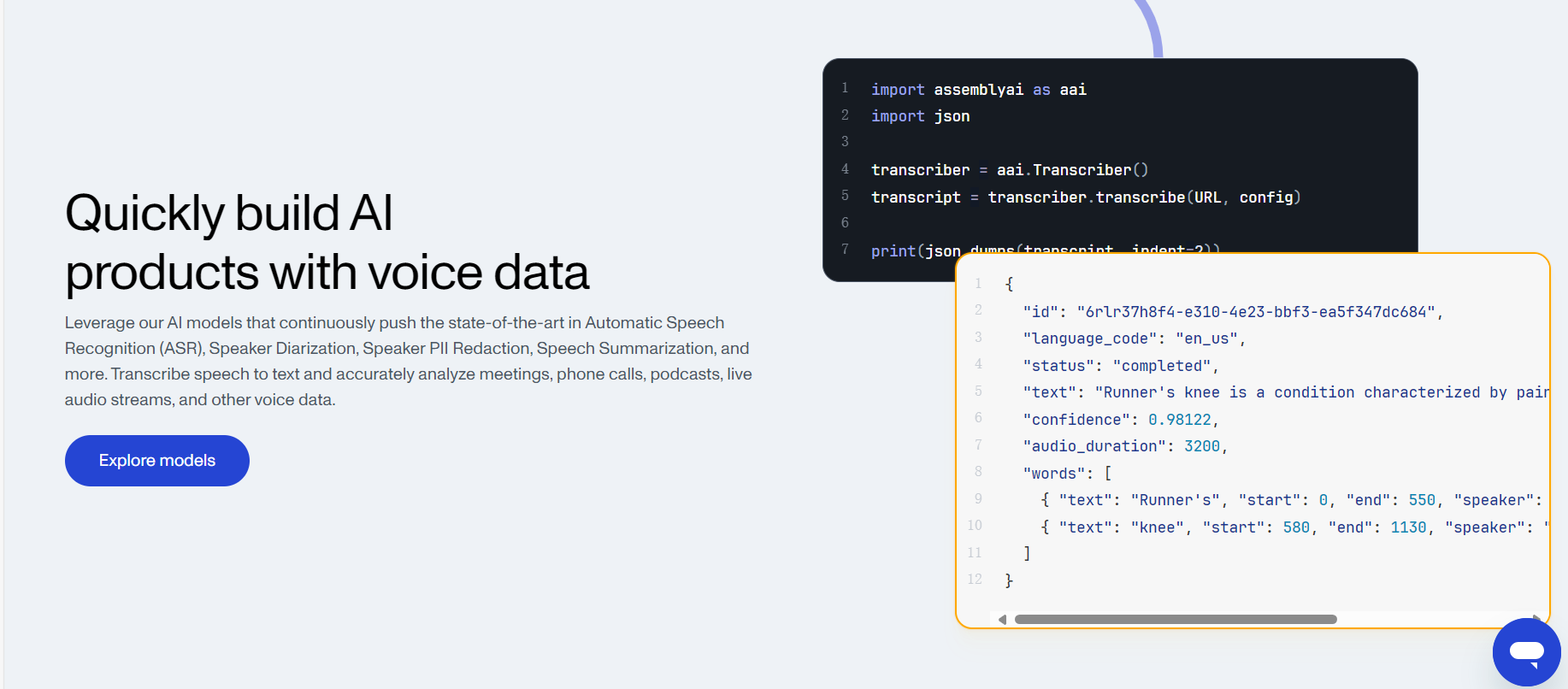 AssemblyAI是一款基于人工智能技术的语音识别和文本转换工具,它可以帮助用户将语音或音频文件转换成文本,或者将文本转换成语音。该工具使用了先进的深度学习技术,可以实现高效准确的文本转换和语音识别。它可以应用在各种场景下,例如自动化语音转写、语音搜索、智能客服、语音助手等。