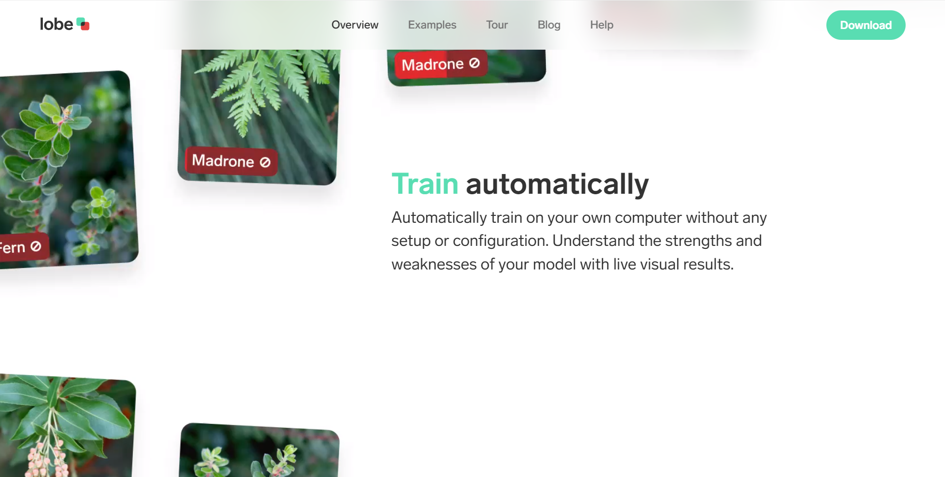用户只需向它展示,希望它学习的示例,就会自动训练一个可以在应用程序中发布的自定义机器学习模型。同时Lobe支持会自动为用户的项目选择合适的机器学习架构,例如,图片分类、物体检测、数据分类等。