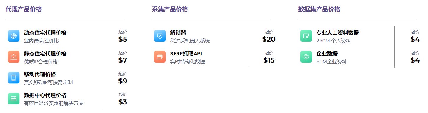 可免费试用,值得信赖的住宅 IP 代理解决方案提供商,使用更快更稳定的全球8500万优质IP抓取数据