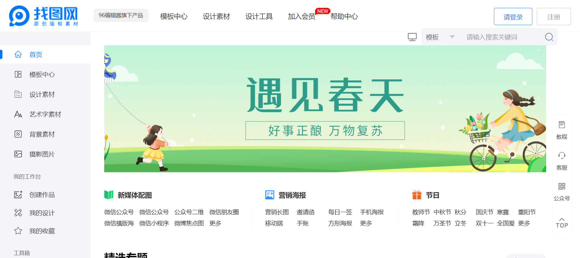 模板中心与设计素材:找图网提供了丰富的模板中心和设计素材库,涵盖了各种主题和场景,包括新媒体配图、营销海报、节日主题等,用户可以根据需要选择合适的模板和素材进行编辑,节省设计时间,提高效率。
