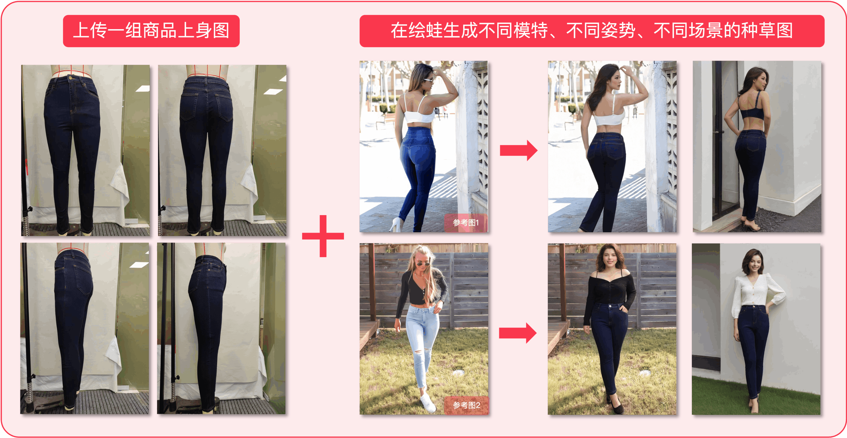 低成本生成有氛围感的商品上身图,便于卖家快速上货、复刻爆款商品