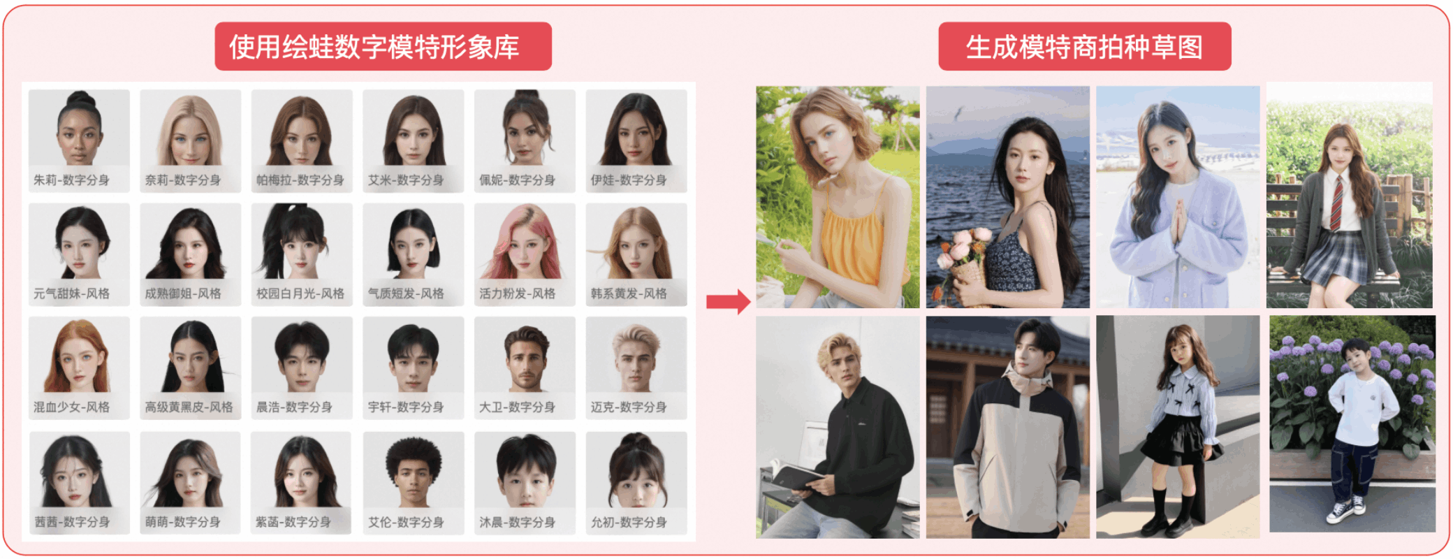 不同肤色、风格模特,可低成本创作跨境商拍图,适配不同品类的服饰