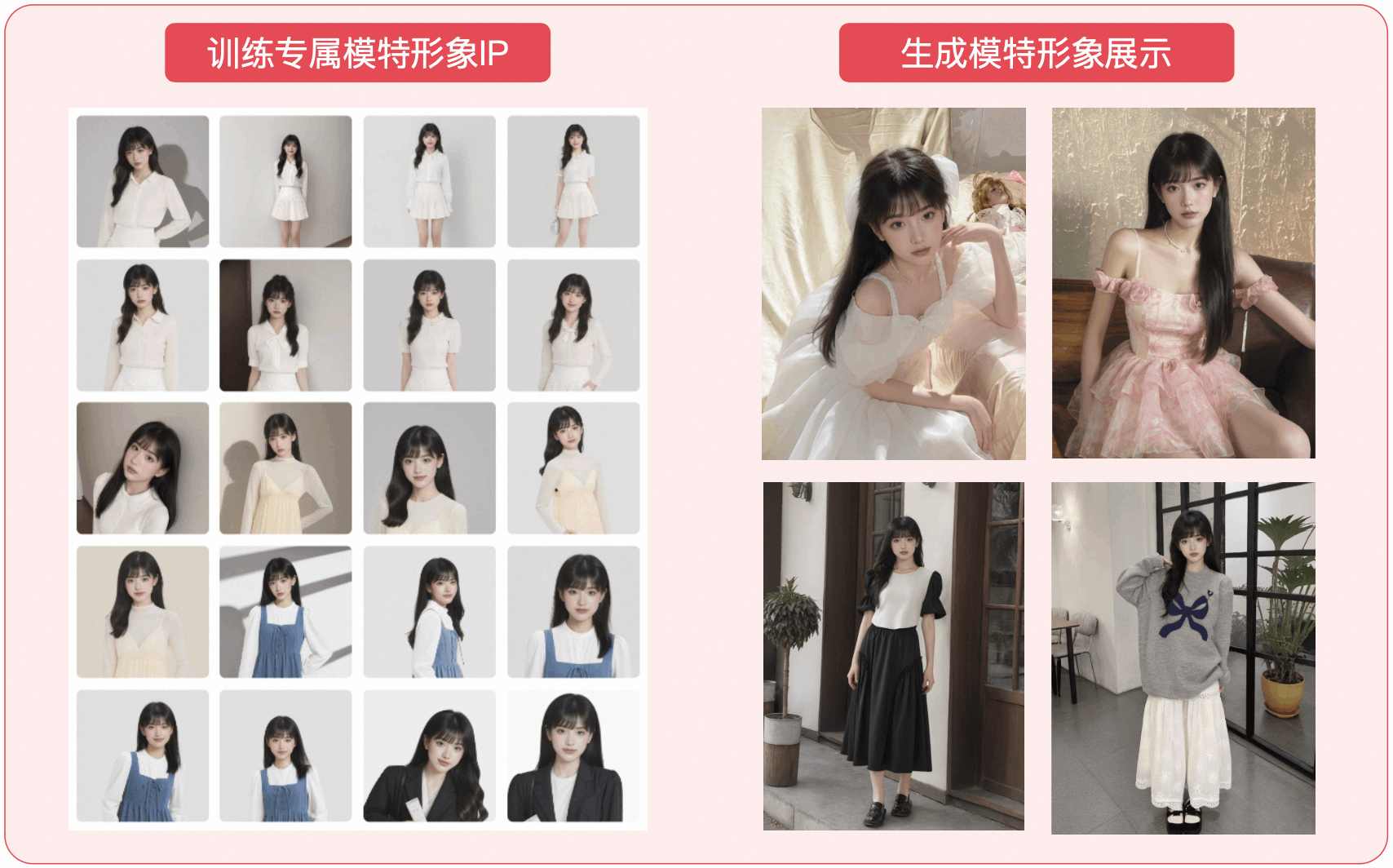 支持商家训练自有模特,便于打造统一的店铺人设、图片风格