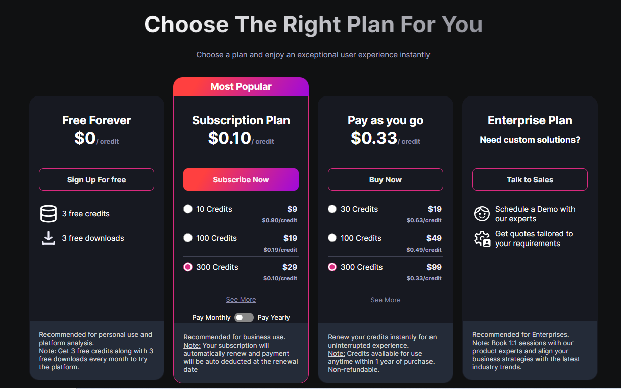 Erase.bg 提供了不同层次的服务,包括免费和付费选项。以下是其基本的收费模式: