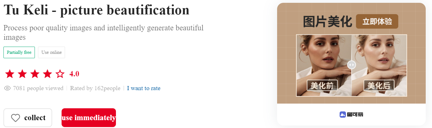 API集成:对于开发者,图可丽提供API接口,可以将AI图像处理功能集成到自己的应用程序或服务中,扩展产品功能。