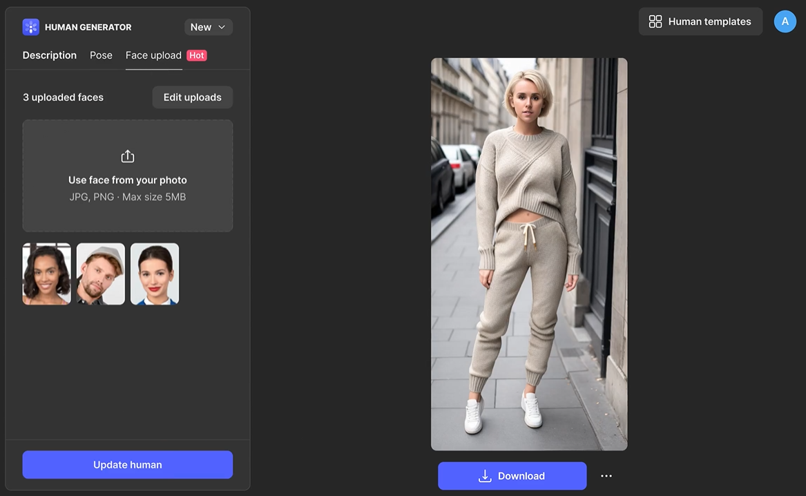 2.人体生成器:$199/年,1000次优先生成机会,同样支持无线下载,无水印,商业用途。