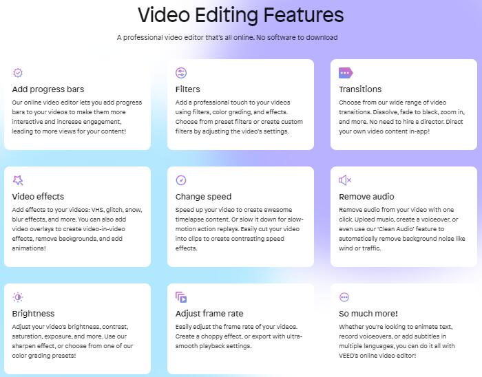 高效的视频编辑与创建能力:VEED.IO提供了强大的视频编辑工具,让用户能够轻松地对视频进行剪辑、合并、添加特效等操作。无论是调整视频速度、添加滤镜,还是进行音频处理,VEED.IO都能帮助用户轻松实现。同时,其智能的视频创建功能还能根据用户的需求自动生成符合要求的视频内容,大大节省了创作时间。