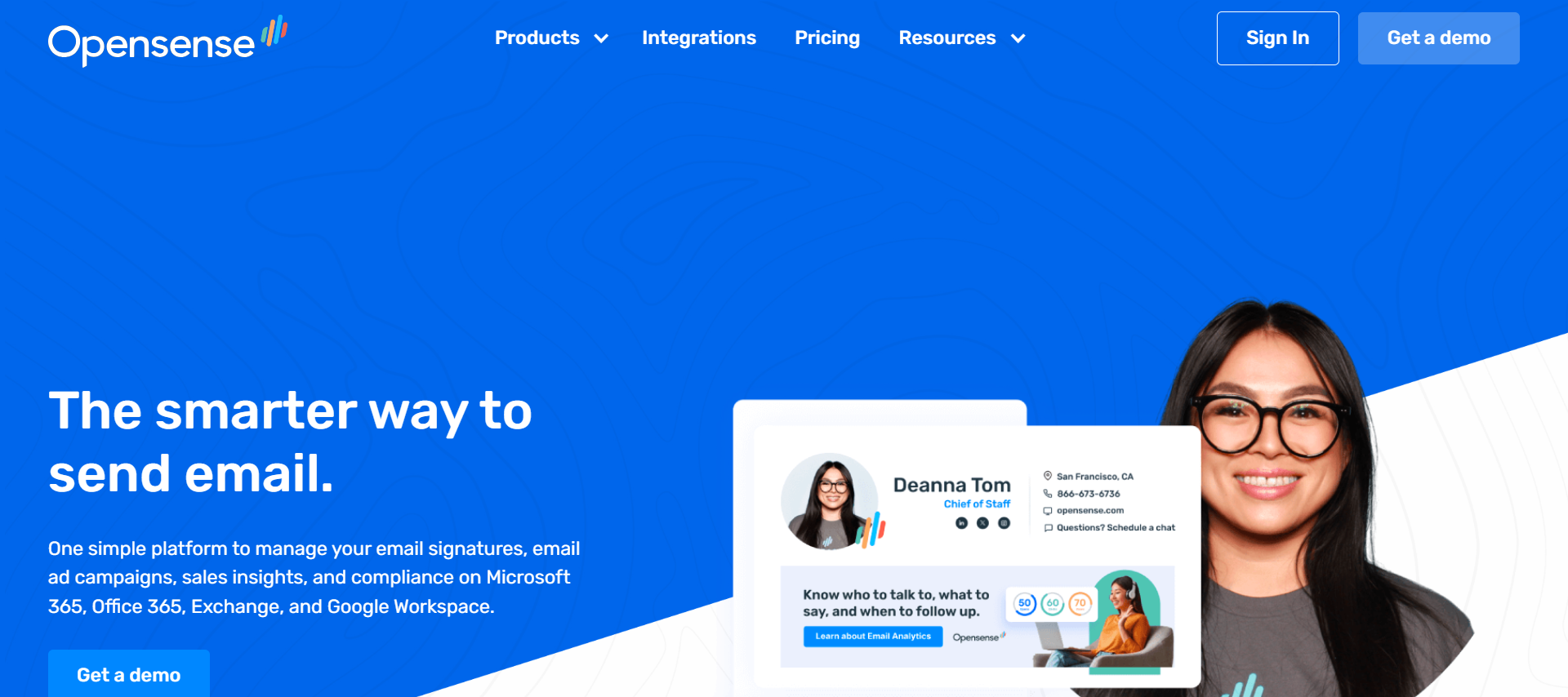 Opensense是一款功能强大、操作简便的综合性平台,能够轻松管理公司范围内的电子邮件签名、推出有力的电子邮件广告活动、获取有价值的销售洞察力,并确保合规性。该先进解决方案与主流的办公软件套件和电子邮件客户端(包括Office 365、Microsoft 365、Google Workspace、Outlook、Gmail和Exchange)以及主要的CRM和营销自动化工具(如HubSpot、Adobe Marketo、Pardot、Eloqua、Microsoft Dynamics和Salesforce)无缝集成,为用户提供更智能的电子邮件发送方式。Opensense帮助营销、销售和IT团队释放员工电子邮件的潜力,保护品牌并拓展销售渠道。