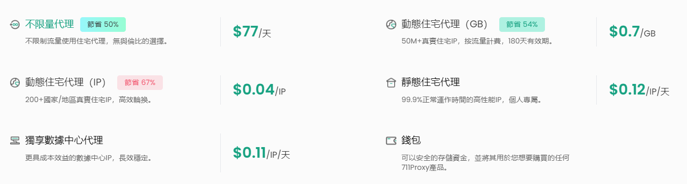 711Proxy 的定价