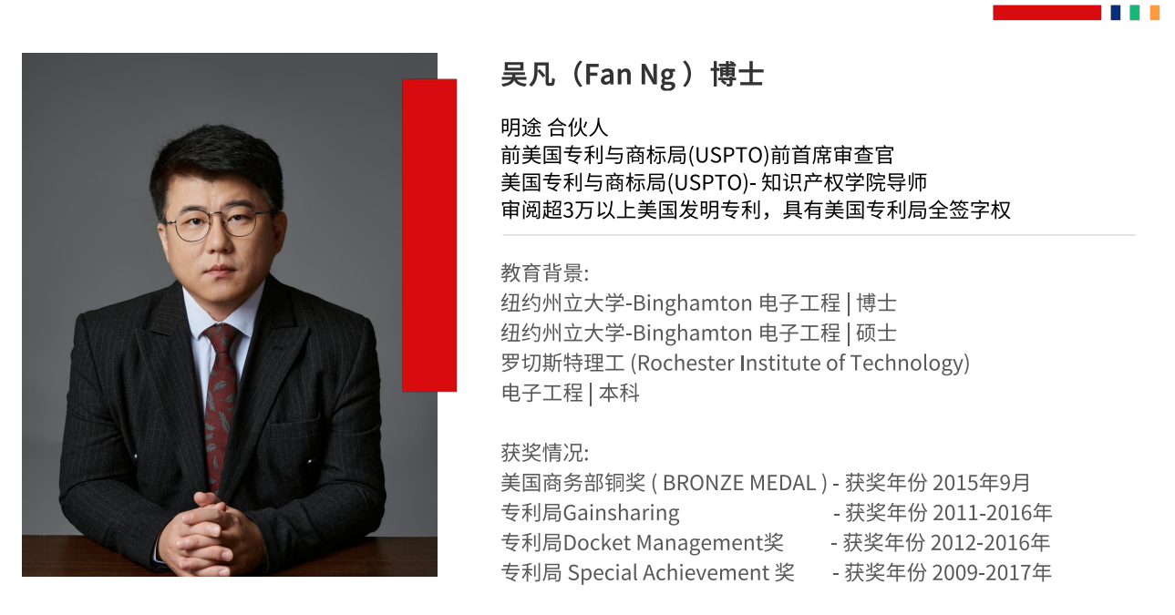 美国专利局知识产权学院导师,教授美国律师如何申请美国专利及如何维权;明途首席技术官,为中国企业提供专业的涉外专利服务、海外侵权维权服务;