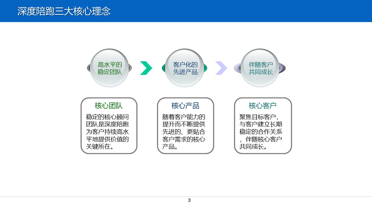 我们的口号是“深耕专业,度身定制;陪伴左右,跑赢竞争”,体现了我们对每一位客户量身定制解决方案的承诺,以及帮助他们在市场中占据优势的决心。